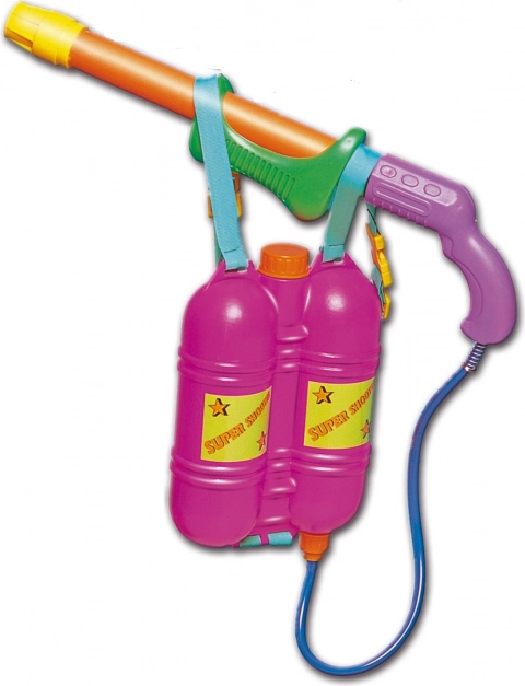 Beholderen med et volumen på 2,5 liter giver tilstrækkeligt med vand til endeløse vandkampe og kan behageligt bæres på ryggen takket være stropperne.