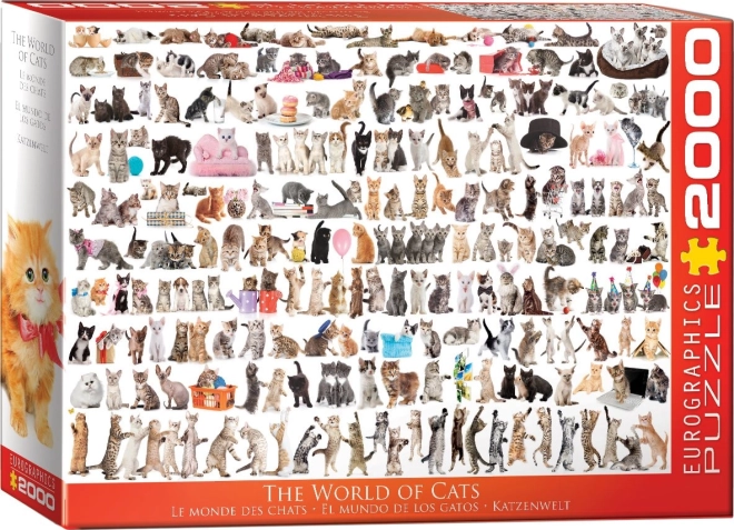 Nyd katteverden i stort format med puslespillet fra EUROGRAPHICS. Med 2000 brikker, uortodoks stansning og usædvanlige former byder det på højere sværhedsgrad og mange timers underholdning. Det færdigsamlede motiv måler cirka 99,7 × 67,6 cm.