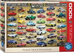 Opdag et stilfuldt puslespil med motivet af pickup-truckenes udvikling fra EUROGRAPHICS med 1000 brikker. Den særlige ukonventionelle udskæring med utraditionelle brikformer øger sværhedsgraden og giver en længere og mere underholdende læggeoplevelse. Teksterne på billedet er på engelsk. Størrelse samlet ca. 67,63 × 48,89 cm.