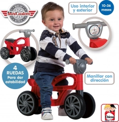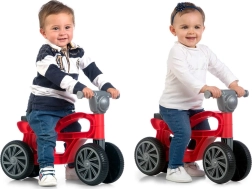 Den robuste plastkonstruktion tåler daglig leg, og de fire hjul giver tryghed selv på mindre jævnt underlag. Løbecyklen er designet til at være stabil, let og nem at manøvrere for de mindste.