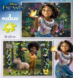 Oplev den magiske verden af filmen Encanto med dette todelte puslespil sæt. I en kasse finder du to separate puslebilleder, hver indeholdende 48 brikker. Det samlede billede måler cirka 28 x 20 cm, hvilket er en ideel størrelse til behagelig leg for børn. EDUCA er kendt for kvalitet og præcision af deres puslespil, hvilket garanterer timers sjov og udvikling af logisk tænkning.