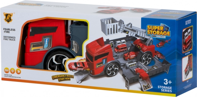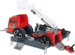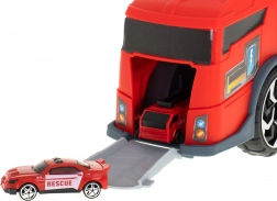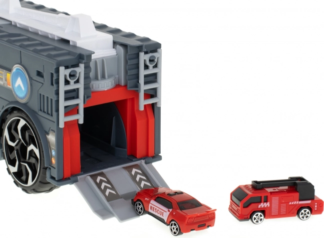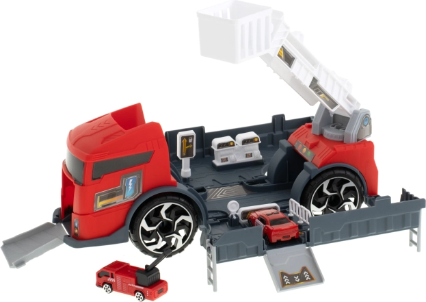 Transportér de små biler til indsatsstedet med denne brandbil. Den integrerede transporter gør det muligt at transportere to medfølgende modelbiler, som nemt kan lastes via ramper. Børn kan også prøve at bevæge den skydelige stige, hvilket tilføjer endnu et niveau af interaktivitet.