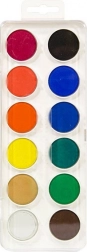 Klassiske skoleakvarelfarver fra KOH‑I‑NOOR i et praktisk sæt med 12 mættede nuancer. Takket være de større kager med en diameter på 30 mm optages farven let med pensel og giver klar og intens dækkeevne til tegning og billedkunst.