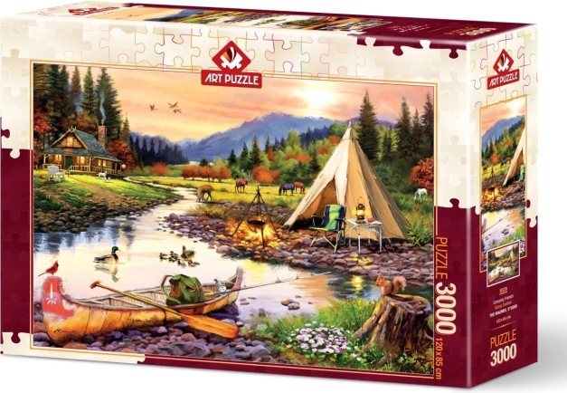 Nyd afslapning med at lægge et stort puslespil med motivet camping fra mærket ART PUZZLE. Det indeholder 3000 brikker og måler færdiglagt cirka 120 × 85 cm. Producenten tilbyder desuden service for fremsendelse af manglende brik ved opfyldelse af de angivne betingelser.