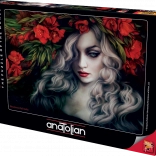 Nyd at lægge et motiv af en kvinde med blomster med Anatolian puslespil på 1000 brikker. Perfekt til puslespilsentusiaster, der sætter pris på detaljeret og farverig udførelse.