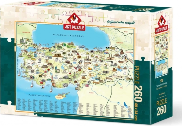 Oplev Tyrkiets skønhed med puslespillet "Kulturkort" på 260 brikker fra ART PUZZLE. Fantastisk underholdning for alle rejseentusiaster!