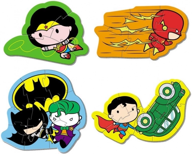 De første skridt ind i puslespillets verden klares legende let selv af de mindste takket være et sæt med fire formskårne puslespil med de populære helte fra Justice League. Hvert puslespil har et forskelligt antal brikker (3, 6, 9, 12), så barnet naturligt går fra det enklere til det mere udfordrende og opbygger sund selvtillid.