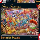 Nyd afslapning med at lægge et kvalitetspuslespil med et motiv fuld af kattesjov. Mærket SCHMIDT tilbyder præcis udstansning, levende farver og 1000 brikker for den ideelle udfordring. Det færdige værk måler 69,3 × 49,3 cm, perfekt til indramning og som gave til katteelskere.