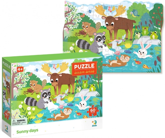 Puslespil fra billedserien Årstider fra producenten DODO. Læg et billede, som du efterfølgende kan udvide med flere scener med dyr gennem hele året. I denne farverige serie finder du scener med forårets opvågnen, solrige dage, efterårets høst og vinterens fornøjelser.