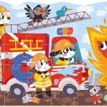 Støt finmotorik, logisk tænkning og koncentration med et flot illustreret børnepuslespil med brandmands-tema. Takket være den konturerede kant kan børnene lettere orientere sig og hurtigere få tryghed i at lægge brikkerne. Når motivet er færdigt, kan det forbindes med andre billeder fra transportserien (gård, rummet, byggeplads m.fl.) og man kan skabe sin egen verden af transportmidler.