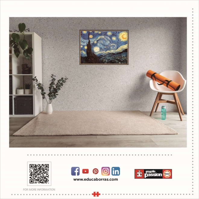 Oplev rolige stunder med at lægge det ikoniske motiv Stjernenatten. Den høje kvalitet fra EDUCA sikrer præcise udskæringer, mættede farver og lang holdbarhed, så du kan vende tilbage til dit yndlingsmotiv igen og igen.