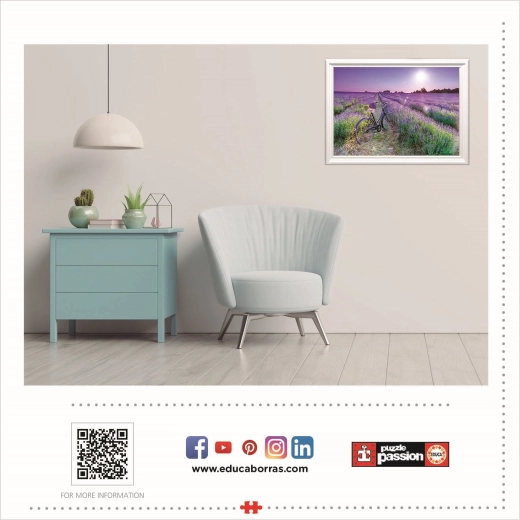Nyd afslapning med et smukt motiv af en lavendelmark og en vintagecykel. Dette kvalitetspuslespil fra EDUCA tilbyder 1000 brikker og måler efter samling ca. 68 × 48 cm. I pakken medfølger gratis FIX PUZZLE lim til nem montering og udstilling af det færdige værk.