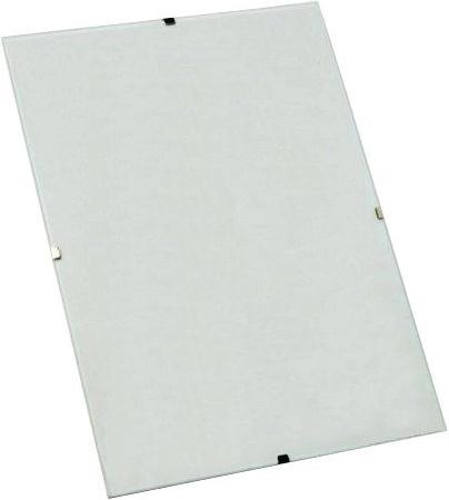 Rammen består af plexiglas med en tykkelse på 1 mm med slebne kanter samt en solid bagplade med beslag til vertikal og horisontal ophængning. Metalklemmer fastgør pålideligt plexiglasset til underlaget, og en dobbeltsidet beskyttelsesfilm beskytter overfladen mod ridser indtil montering.