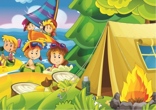 Denne pakke indeholder to puslespil med forskelligt antal brikker, som tilsammen skildrer temaet feriefornøjelse. Ideelt til familier, der vil hygge sig sammen og samtidig træne deres puslespilsevner.