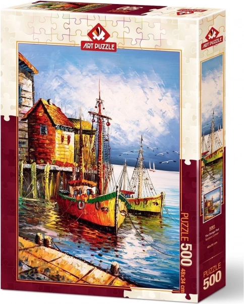 Nyd et kvalitetsforarbejdet puslespil med motiv af en havn i varme orange nuancer. Med 500 brikker er det perfekt til en hyggelig aften eller som gave til puslespilsentusiaster. Når det er færdigt, får du et dekorativt billede på ca. 34 × 48 cm.