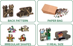 Med glatte kanter uden splinter og en stærk HDF-plade på 3–4 mm er puslespillet holdbart og rart at arbejde med. Det er desuden EKO-venligt – uden plastikemballage, leveret i papirpose og æske. Der medfølger også en separat forlæg for nemmere samling.
