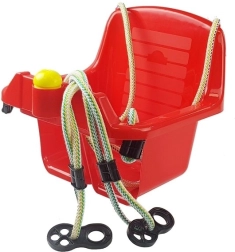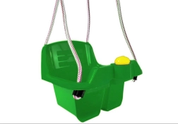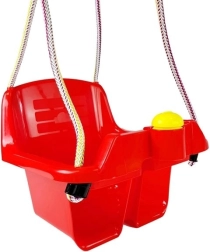 Sikker spandgynge til de mindste med dybt sæde, højt ryglæn og forreste bøjle for stabil siddestilling. Holdbar plast med kraftigt ophængsreb egner sig både til indendørs og udendørs brug. Inkluderer også en sjov knap/horn, som begejstrer små børn.