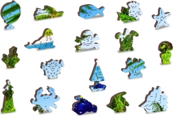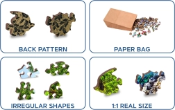 Særligt formede brikker – inklusive motiver af dyr og genstande – har præcist laserfremhævede detaljer, og nogle af dem kan stilles op som små figurer. Puslespillet er designet med fokus på glatte kanter uden splinter og lang holdbarhed.