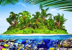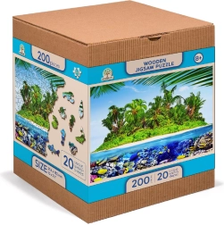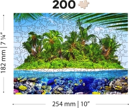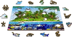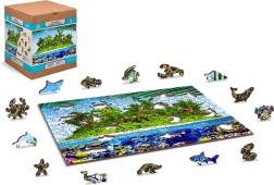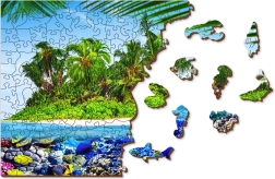 Dette kvalitetstræpuslespil af HDF-plade med tykkelse 3–4 mm vil glæde alle puslespilsentusiaster, som søger en original udfordring. Takket være dobbeltsidet 2-i-1 udførelse kan du lægge efter motivet af et tropisk paradis eller efter det gentagne mønster på bagsiden, som virkelig tester fantasien.