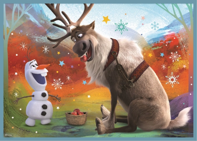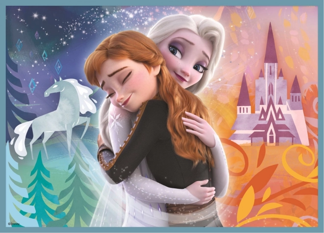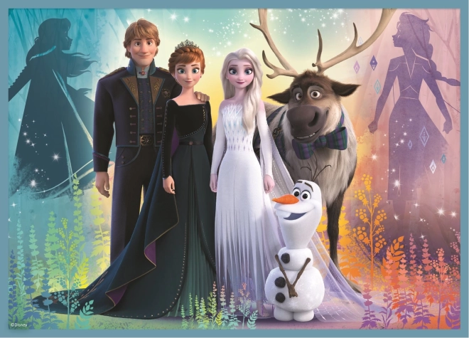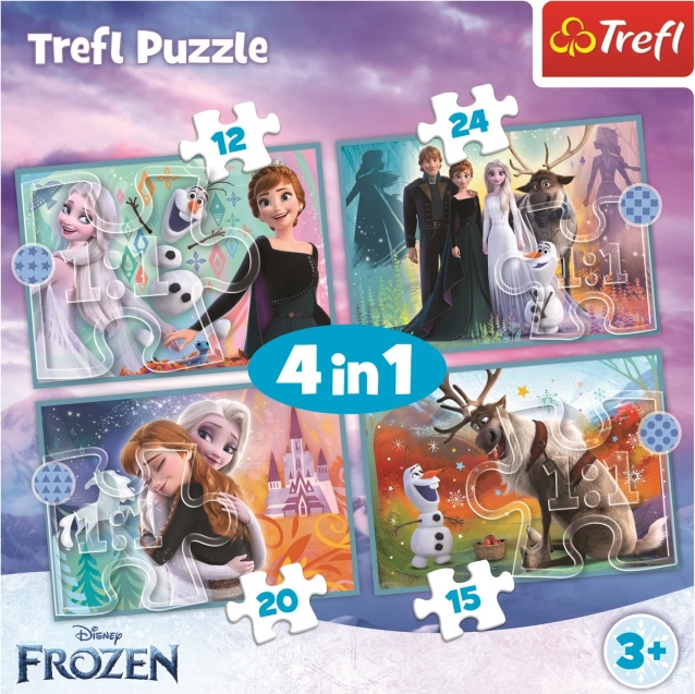 Puslespil 4v1 indeholder forskellige antal brikker (12, 15, 20, 24), hvilket giver en ideel kombination for børn i forskellige aldre. Når puslespillene er samlet, opstår der smukke billeder fra Frost-verdenen.
