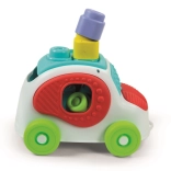Bilens låg med åbninger fungerer som en sorter. Børn lærer at kende grundlæggende former og farver og træner hånd-øje-koordination.