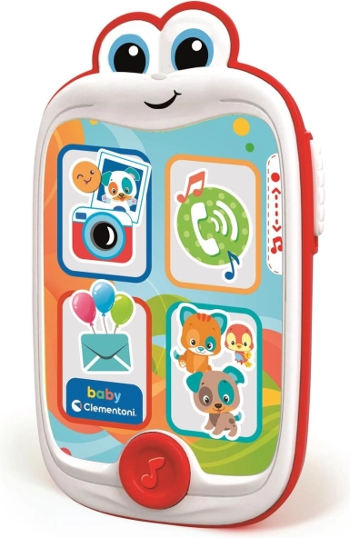 Den interaktive smartphone CLEMENTONI BABY er et legetøj inspireret af voksnes smartphones. Den tilbyder masser af lys- og lydstimuli, der motiverer til udforskning og støtter den første læring gennem leg. Med fire store knapper og en musiktangent kan børn nemt afspille melodier og stemmer fra tre dyr – hund, kat og fugl.