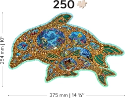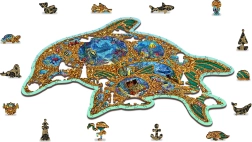 Forkæl dig selv med underholdning ud over det sædvanlige med et træpuslespil formet som en delfin, inspireret af undervandsverdenen. Takket være specialformede brikker – hvoraf nogle har form som havdyr – er lægningen visuelt attraktiv og samtidig mere udfordrende end klassiske puslespil. Laserfremhævede detaljer giver motivet dybde, og nogle brikker kan stå som små figurer.