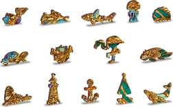 Farverigt undervandsdesign med specialbrikker formet som havdyr og planter giver både originalitet og glæden ved at opdage nye former under lægningen.