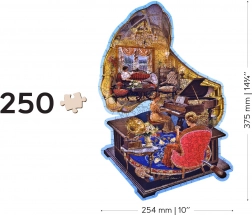 Dette designede træpuslespil i form af et klaver og med et vintage motiv af en hyggelig salon med grammofon vil begejstre enhver, der elsker elegant kunst og klog samling. Takket være laserskårne, glatte kanter og en solid HDF-plade forbindes brikkerne perfekt og forbliver robuste selv ved hyppig brug.
