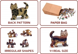 I pakken finder du en separat forlæg for nem samling. 40 unikke brikker i dyreformer bringer sjov variation og højere sværhedsgrad – sammenlignet med klassiske puslespil venter en mere gennemtænkt udfordring, som træner koncentration, finmotorik og tålmodighed.