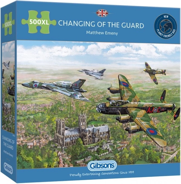 Dyk ned i historien om de britiske luftstyrker med dette unikke puslespil Vagtskifte. Det indeholder 500 brikker og fanger øjeblikket, hvor de berømte RAF-fly svæver over den ikoniske Lincoln-katedral.