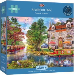 Samles den smukke scene Hotel Riverside Inn med et puslespil på 1000 brikker fra Gibsons, som imponerer med detaljeret udførelse og materialer af høj kvalitet.