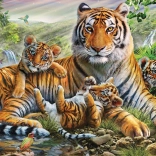 Oplev et smukt puslespil med motiv af den vilde natur. Illustration af en tigermor med sine unger udmærker sig ved fine detaljer og mættede farver. Samlingen af 1000 brikker giver en behagelig udfordring for alle puslespilsentusiaster og byder på afslapning på lange aftener. Når det er færdigsamlet, får du et billede på 69,3 × 49,3 cm, ideelt til indramning.
