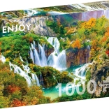 Rejs til den magiske atmosfære ved de kroatiske Plitvice-søer og deres vandfald i varme efterårsnuancer. Dette puslespil med 1000 brikker giver en behagelig udfordring, og når det er lagt, får du et imponerende billede på 68 × 48 cm, der også egner sig til indramning.