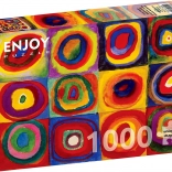 Oplev harmoni mellem farver og former i det unikke motiv “Farvestudie – kvadrater med cirkler”. Dette kvalitets‑puslespil med 1000 brikker er ideelt for alle kunstelskere og for dem, der søger en mere krævende udfordring. Når det er lagt, opstår et iøjnefaldende billede, der egner sig perfekt til indramning.