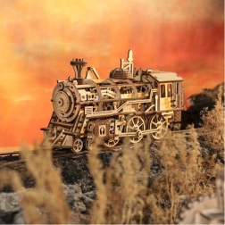 Oplev spændingen ved at samle denne unikke 3D-model af et trælokomotiv. Med fjederdrevet motor bevæger toget sig rigtigt, mens dampfløjten tilføjer autenticitet. Modellen er designet til nem montering uden lim med præcist udskårne dele af finér.