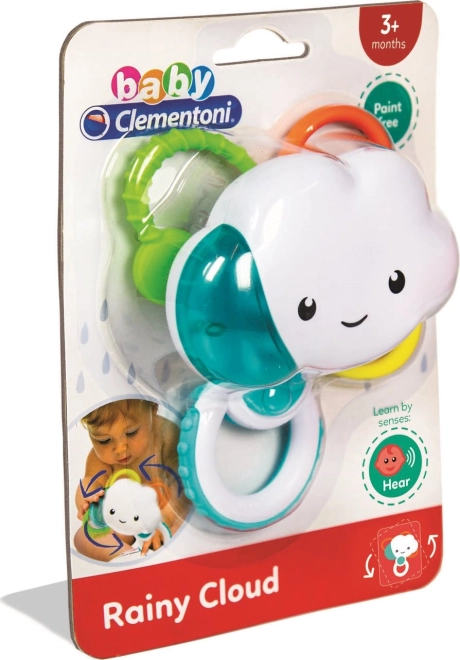 Oplev en sanselegetøjsfavorit, der fanger barnet ved første berøring. Regnskyen hvisker blidt ved drejning takket være de små kugler indeni, hvilket skaber en behagelig og beroligende effekt. De forskellige størrelser og strukturerede buer fungerer som en sikker bidering og nemme greb for små hænder.