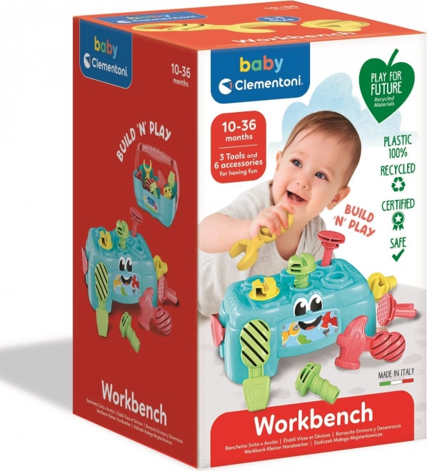Den lille arbejdsbænk CLEMENTONI BABY Play for Future er det ideelle legetøj til nysgerrige børn, der kan lide at skrue, hamre og udforske værktøjernes verden. Bænken kan på et øjeblik forvandles til en praktisk kasse med behageligt håndtag, så alle dele nemt kan ryddes op og tages med overalt.