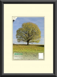 Sort plastikramme, ideel til indramning af fotos, plakater, diplomer eller udmærkelser og et perfekt supplement til et moderne interiør. Rammen inkluderer glas med en tykkelse på 2 mm med slebne kanter samt en simpel bagplade med clips, som muliggør ophængning både lodret og vandret.