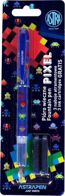 Oplev den pålidelige fyldepen ASTRA Pixel, som kombinerer komforten ved daglig skrivning med robust konstruktion. Iridiumkuglen på spidsen sikrer jævn og præcis streg, hvilket gør skrivningen behagelig selv ved længere brug.