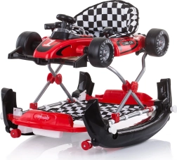 Multifunktionel 4-i-1 gåstol til børn fra 6 måneder op til 12 kg, som støtter de første skridt, balance og koordination. Tilbyder tilstandene gåstol, gyngestol, aktivitetscenter og skubbebril legetøj. Har en bred base for stabilitet, 3 højdeindstillinger, 6 stopklodser mod fald og et aftageligt legepanel formet som en formelbil med lyde og lys.