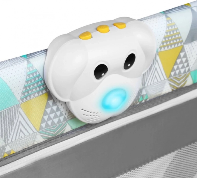 Praktisk rejseseng til spædbørn og småbørn med rigt udstyr til behagelig søvn og sikker leg på farten. Den tilbyder to højdepositioner på madrassen, sideindgang med lynlås, myggenet og hjul med bremse for nem flytning. Takket være LockGuard-systemet er den beskyttet mod utilsigtet sammenklapning, og der medfølger også puslebord, sideorganizer og interaktiv hund med melodier til underholdning.