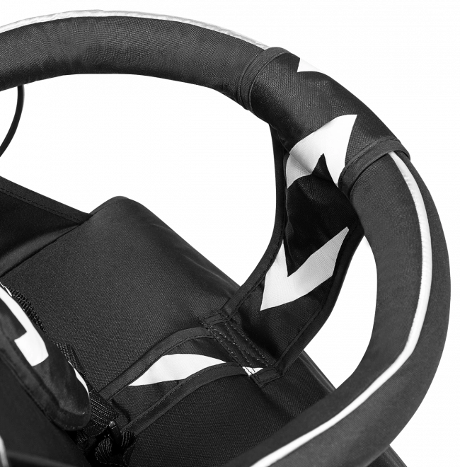 Sikkerheden varetages af 5-punkts seler med bløde beskyttere, frontbøjle med skridtrem og en pålidelig fodbremse. De drejelige forhjul af EVA-skum med mulighed for lås klarer brosten og ujævnheder, og foraffjedringen øger kørekomforten. Den praktiske kurv under sædet og to lommer bag ryglænet giver plads til indkøb og småting.