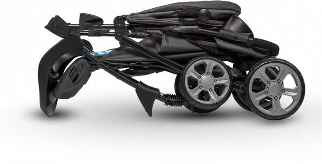 - Komfort for barnet: glidende nedfældning til liggestilling, stor kaleche med vindue