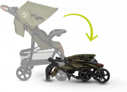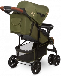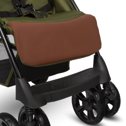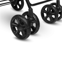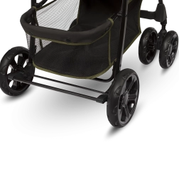 Takket være hjul af holdbart EVA-skum er klapvognen stabil på forskellige underlag. Blød affjedring på forhjulene dæmper stød, og muligheden for at låse til ligeud-kørsel øger stabiliteten på brosten. Klapvognen foldes nemt til kompakte mål til transport eller opbevaring i bagagerummet.