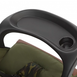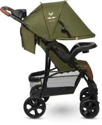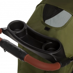 5-punkts seler med bløde polstrede beskyttere, beskyttelsesbøjle med bakke til snack og kopholder. Klapvognen er testet på SGS-laboratorium og opfylder strenge standarder.