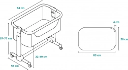 Højdejustering i 5 trin muliggør præcis tilpasning til sengen, og muligheden for hældning af madrassen øger komforten ved forkølelse eller refluks. Den åndbare netstof forbedrer ventilationen og giver overblik over barnet. Den stabile konstruktion er testet af TÜV SÜD og SGS i henhold til EN 1130 og EN 16890.