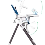 Højstol i moderne design, velegnet til børn fra 6 til 36 måneder. Sædet er formet og sikrer korrekt siddestilling for barnet. Sædebetrækket kan om nødvendigt nemt tages af og vaskes ved 30 grader. Fordele: • enkel klapmekanisme • 3-punkts sikkerhedssele • aftagelig dobbeltbakke • justerbar fodstøtte • skridsikring, der forhindrer barnet i at glide • stabil konstruktion • maksimal belastning 15 kg. Mål for den sammenklappede stol er 94 x 68 x 48 cm.