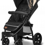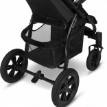 De store vedligeholdelsesfri hjul med slidstærk slidbane og fuld affjedring klarer brosten og ujævnheder uden problemer. For bedre styring er der lås af forhjulene og en central fodbremse. Med 9-trins regulering af håndtaget kan du tilpasse klapvognen til din højde. Sikkerheden sikres af 5-punkts seler med bløde puder og reflekselementer på kalechen, bøjlen og fodstøtten. Klapvognen opfylder standarden EN 1888.