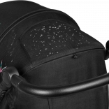 Den udvidede XXL-kaleche med UPF 50+ og vandafvisende finish beskytter mod både sol og regn, og det praktiske kiggevindue giver hurtig kontrol over, hvad der sker i vognen. Sikkerheden varetages af 5-punktssele, refleksdetaljer og et aftageligt bøjlehåndtag i økolæder. I pakken medfølger reducerende spædbarnsindlæg, foret fodpose, kopholder og en rummelig indkøbskurv med bæreevne op til 9 kg. Systemet til nem sammenklapning gør både transport og opbevaring lettere.